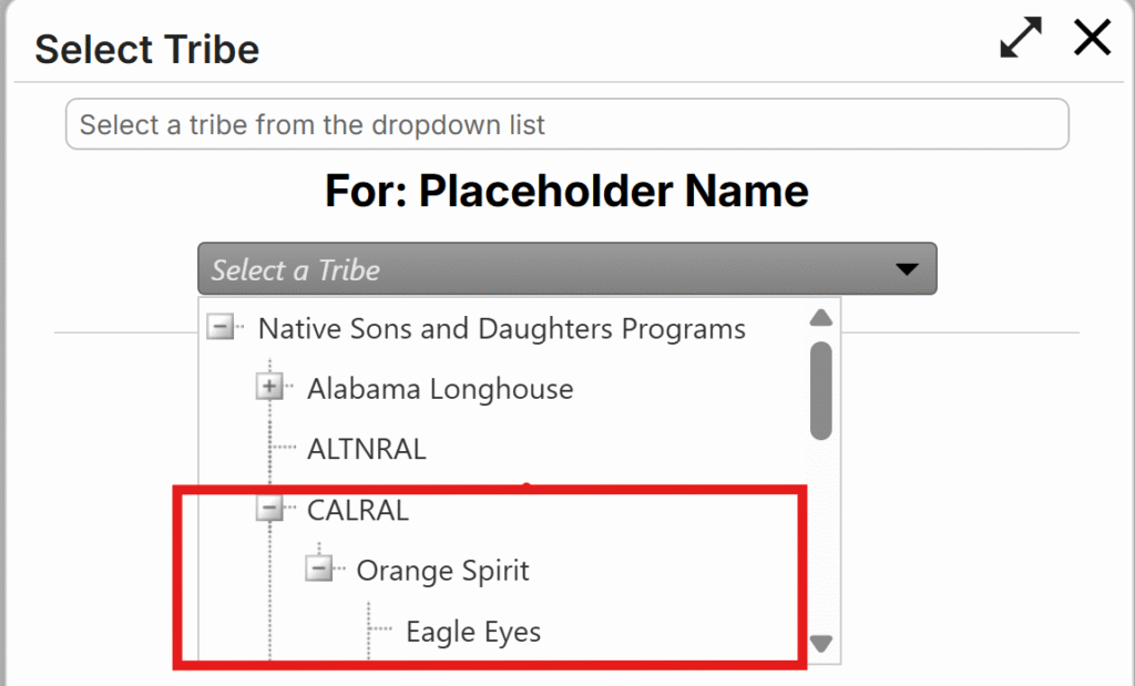 For Step 5 in the Registration Process, you will need to add the Primary Member (Dad) and the Tertiary Members (Daughter(s)) to a Tribe. (If you don’t know what tribe to join please reach out via email to the Nation Greeter.) To add you and your daughter(s) to a tribe, hit “Actions” then “Add Tribe.” Then select “CALRAL” and “Orange Spirit” and select your tribe.